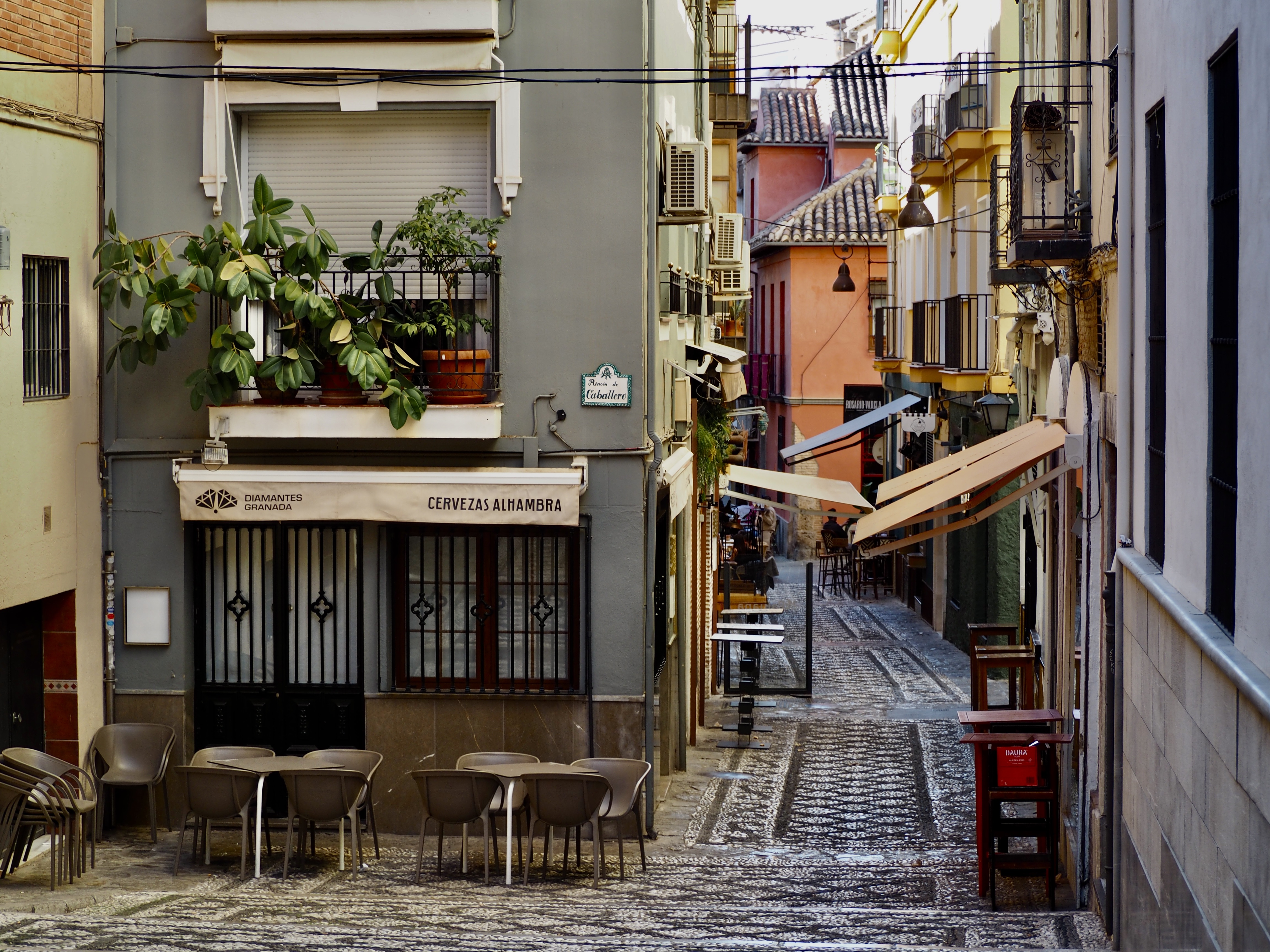 Laskeudutaanpa Alhambrasta Granadan keskustaan. Tapaksia, värejä, Verdejoa, hitaampaa askellusta, tanssia, kaikille aisteille.